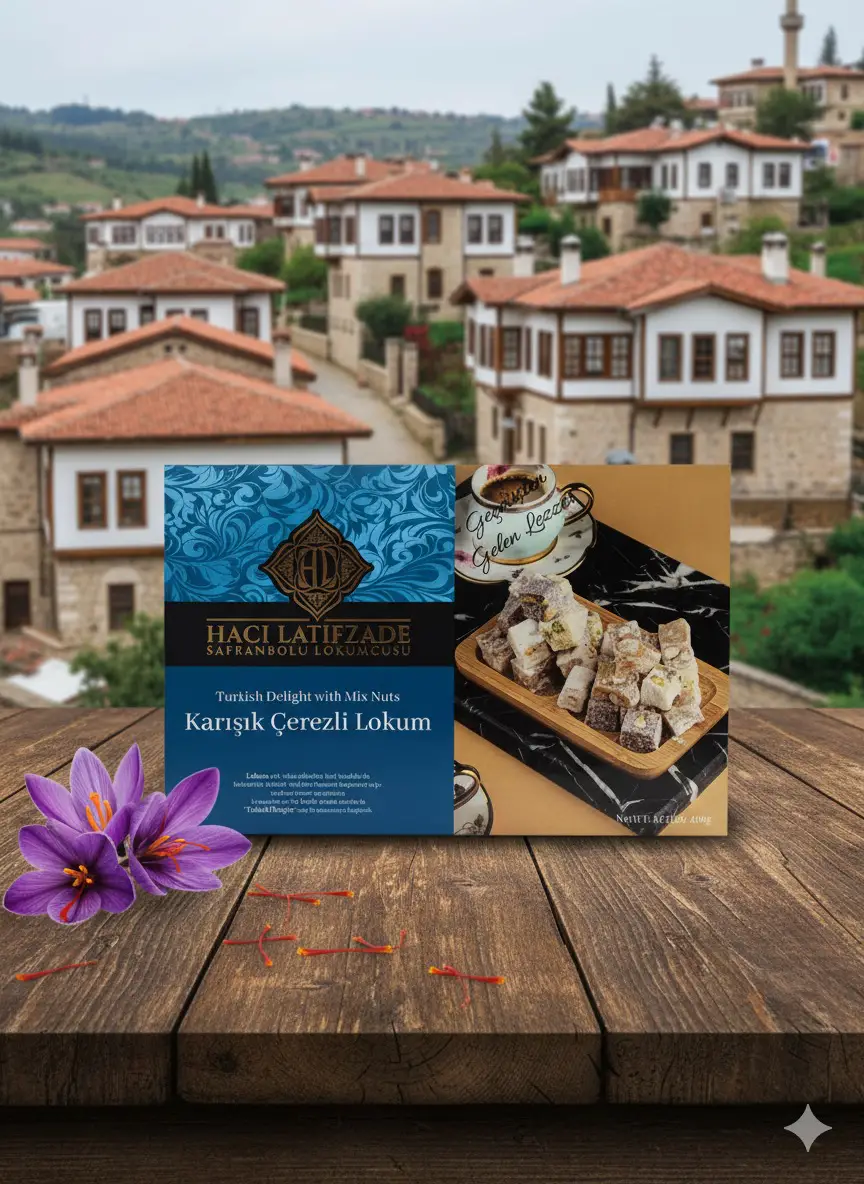 Net 400 gr Safranlı Çifte Kavrulmuş Narlı Karışık Duble Antep Fıstıklı Lokum